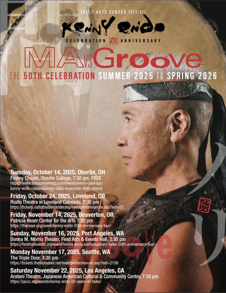 Kenny Endo’s 50th Anniversary Celebration CONTINUES through Spring 2026…NEXT CONCERT Noember 22 7:30 pm – Aratani Theatre Little Tokyo, Los Angeles, CASpring 2026 – East Coast, Europe